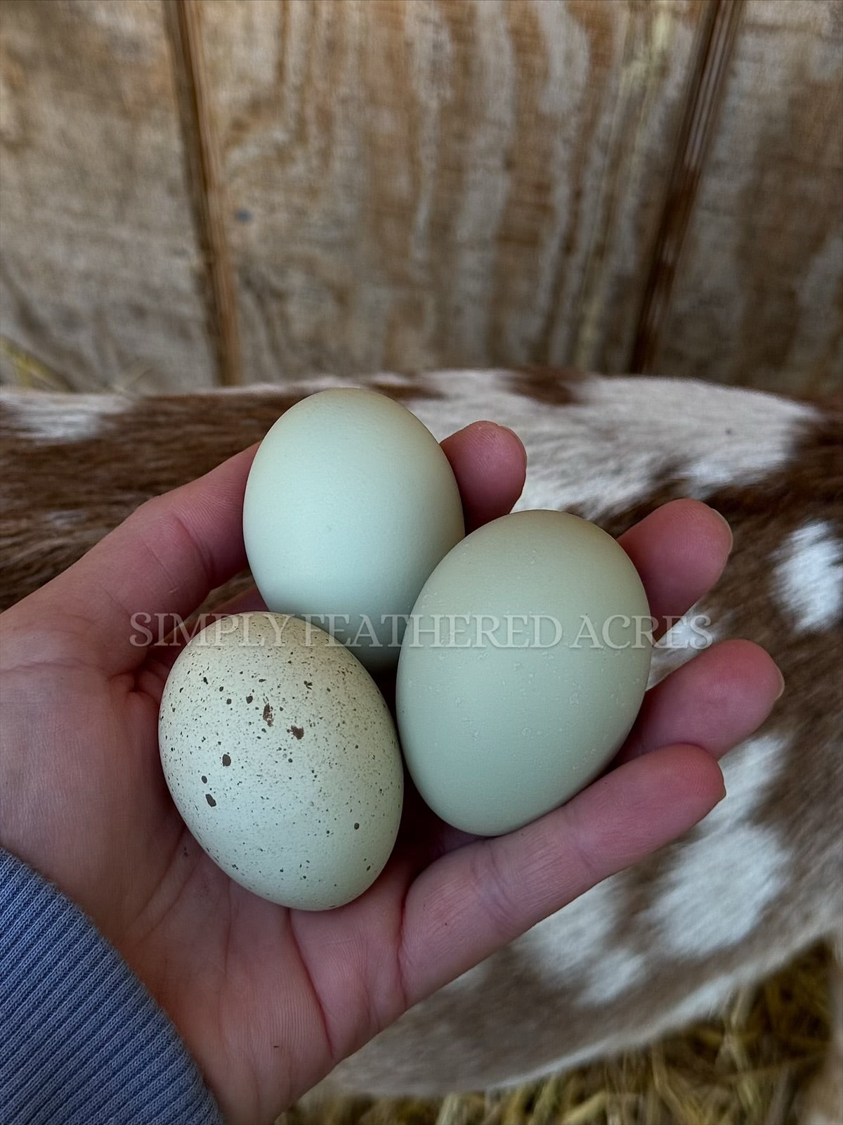 Silverudds Blue eggs aren’t always speckled. A lot of times I find the blooms are hiding them. Some days the eggs are more speckled than others and sometimes a hen will lay a completely plain egg. But my entire SB flock has speckled genes and all of the shades of blue and green are still beautiful.